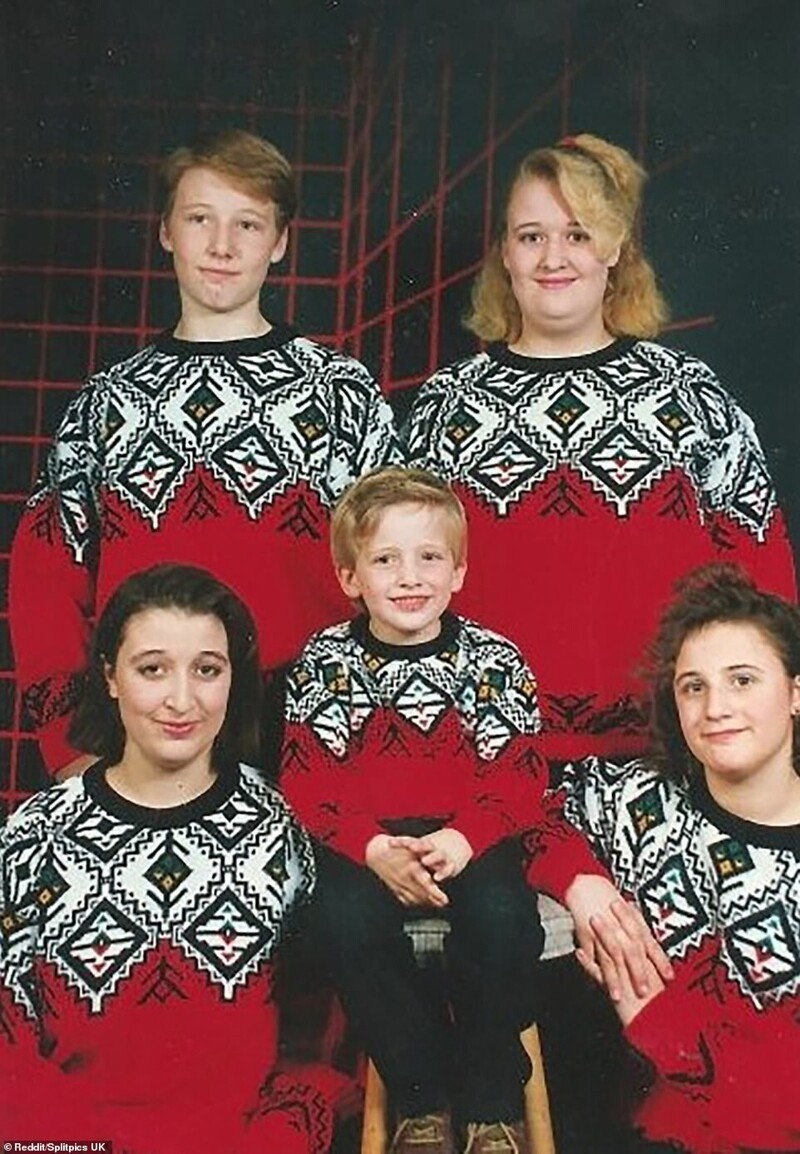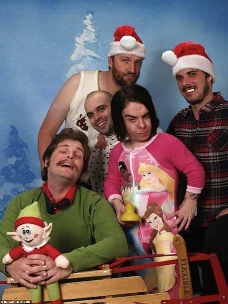 На этой семейной рождественской фотографии на первый взгляд нет ничего плохого, пока вы не заметите мокрое пятно у парнях на штанах