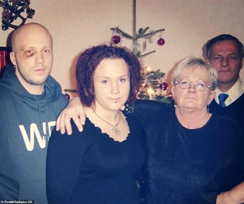 На этом снимке все какие-то невеселые. Возможно, это связано с фингалом под глазом у сына
