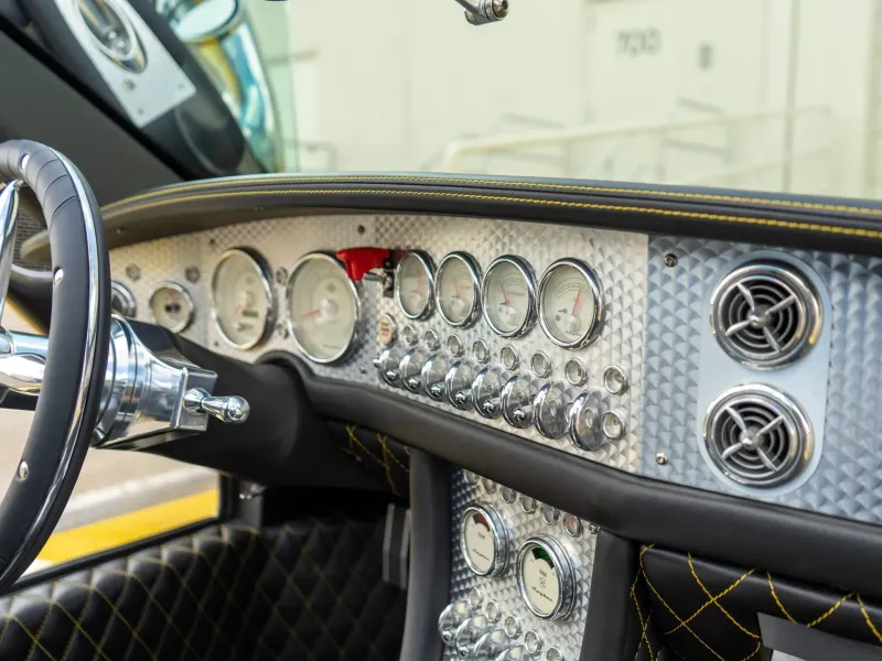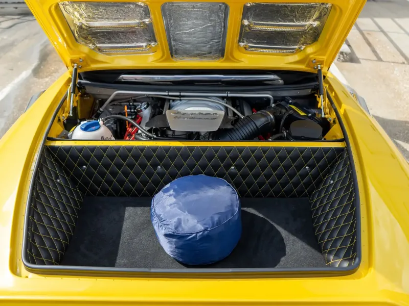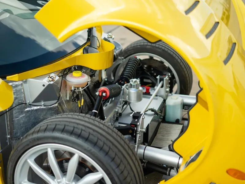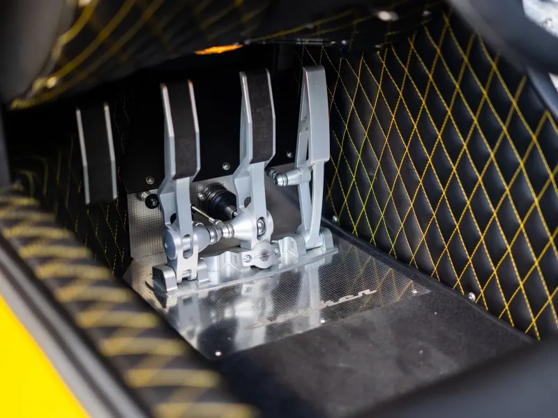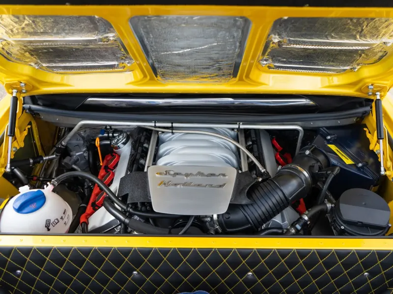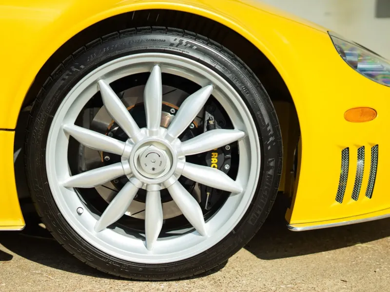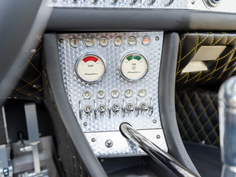 Жёлтый кузов спайдера сочетается с чёрной кожей в салоне с жёлтой строчкой. По данным продавца, среди всех Spyker C8 Spyder только четыре машины имели аналогичную отделку.