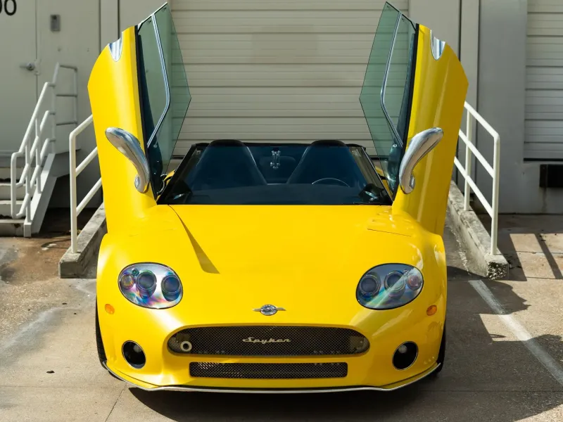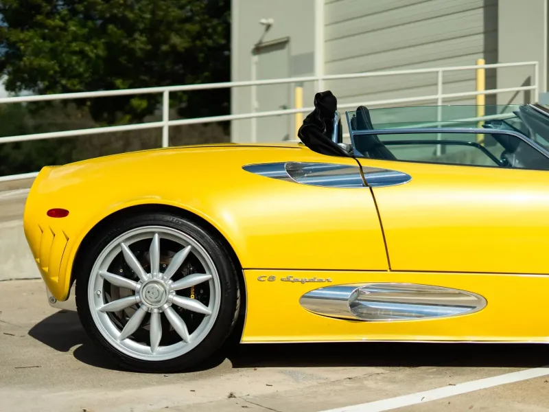Если «обычный» Spyker недостаточно особенный… C8 Spyder, который вы видите здесь, немного более особенный – и более привлекательный. Этот желтый Spyker 2008 года выпуска — один из 121 C8 с открытым верхом, построенных голландским брендом. Из них только четыре были поставлены в желтом цвете с черной кожей.