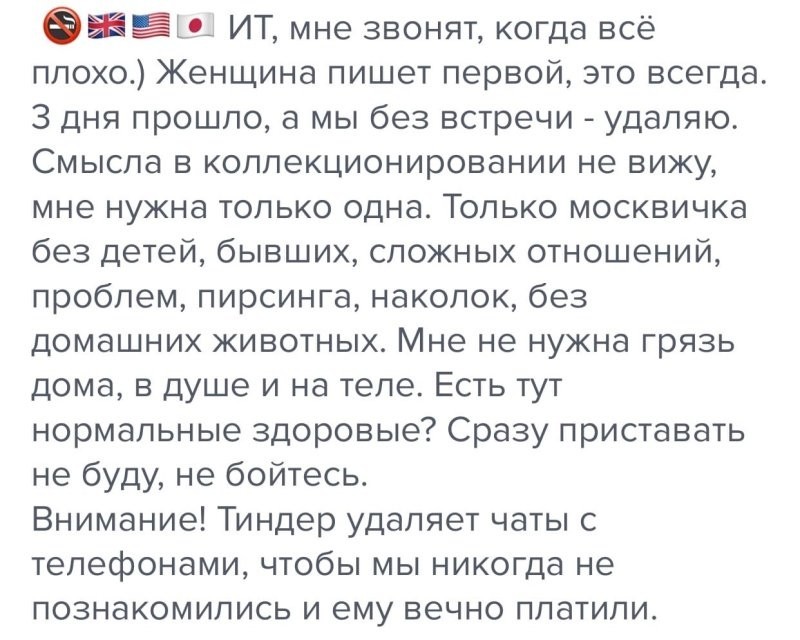 "Только москвичка, без детей и фото в купальнике": запросы мужчин из приложения для знакомств (15 фото)