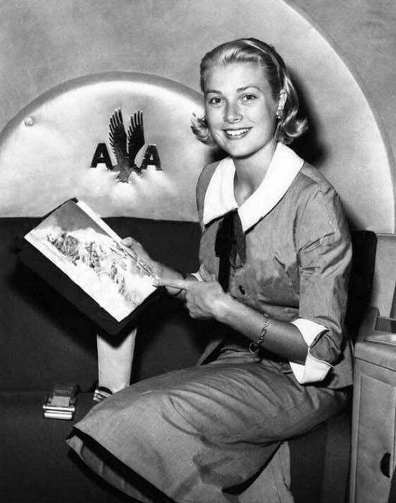 Грейс Келли, актриса и 10-я княгиня Монако, в образе стюардессы Американских авиалиний. США. 1947 год