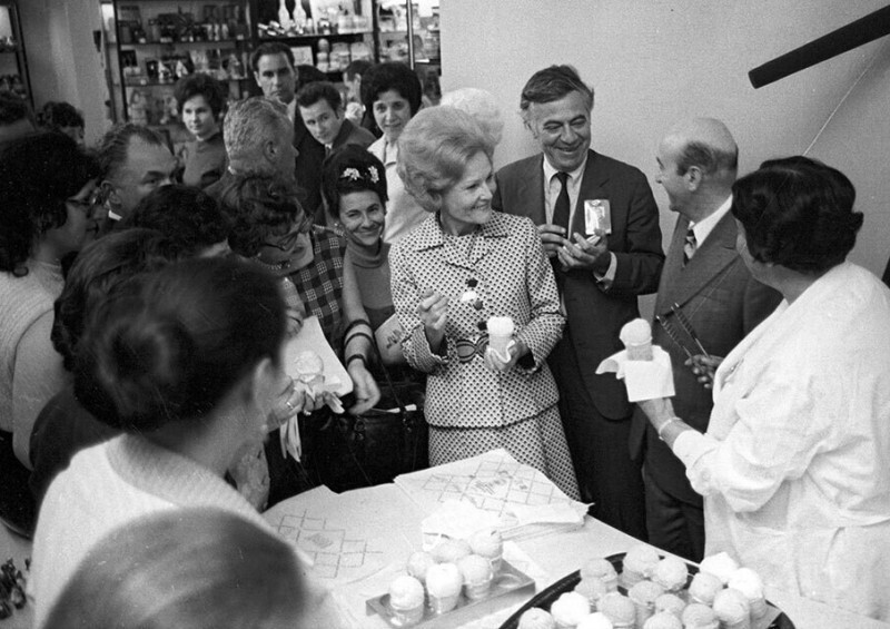 Супруга президента США Патриция Никсон пробует мороженое во время пребывания в СССР, 1972. Фотограф Эдуард Песов