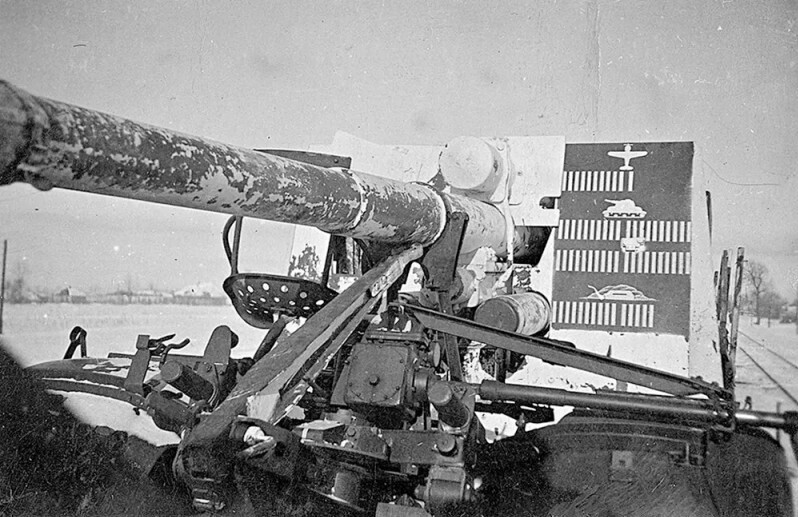 Расчет немецкой 88-мм зенитки Flak 18/36/37 отметил поражённые цели. Вторая мировая.