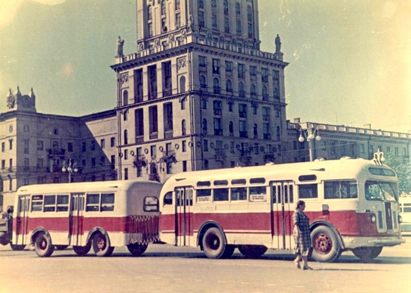 До изобретения "гармошки", автобус ЗиС-155 с прицепом. Минск, 60-е годы