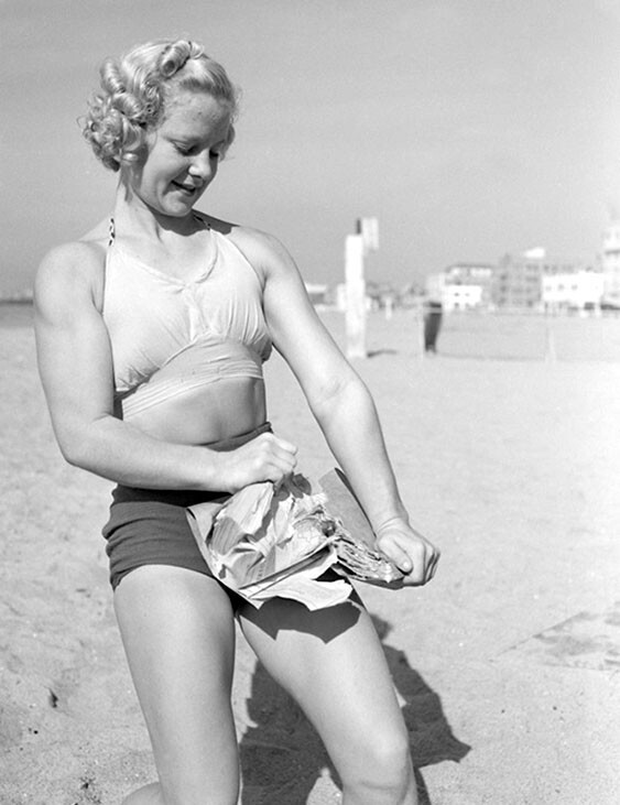 Бодибилдер Релна Брюэр демонстрирует силу, разрывая телефонную книгу. США, 1938 год