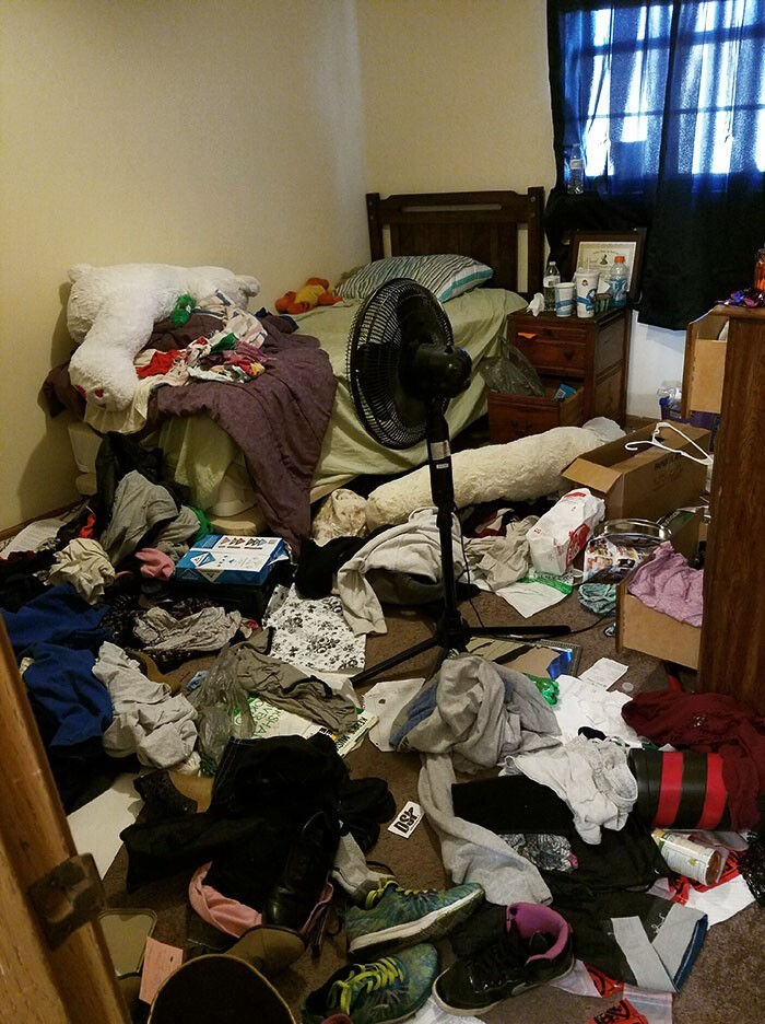 "Комната моей соседки по общаге. Скоро к ней должна прийти мама - она уберется и помоет за нее посуду"