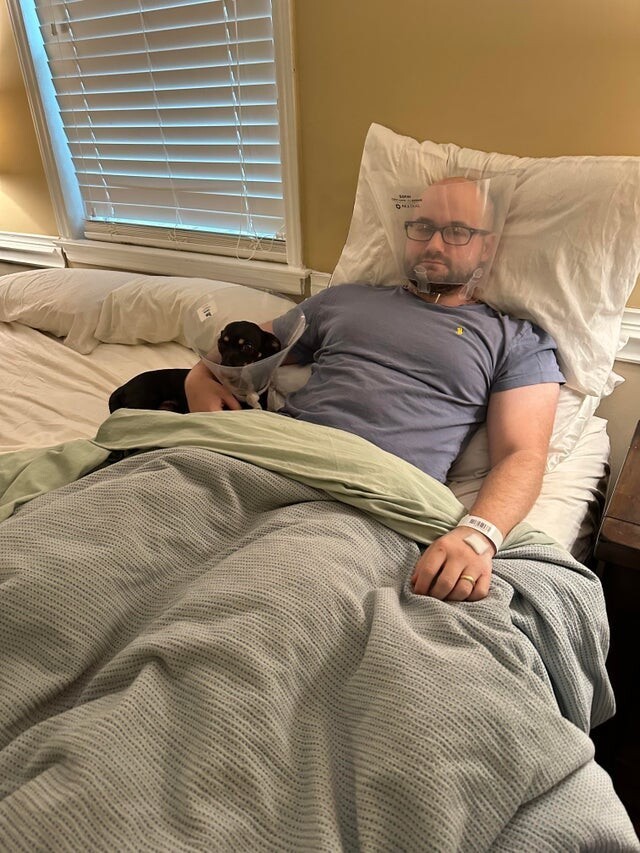 Мне удалили аппендицит. Жена решила сделать шуточную фотографию. Мне не смешно