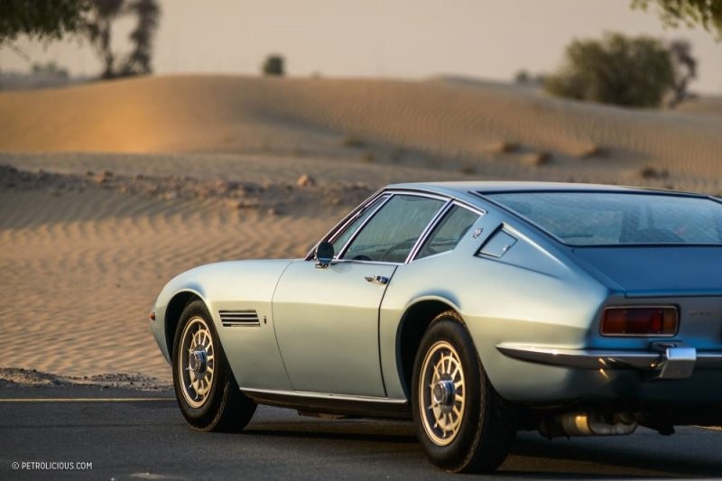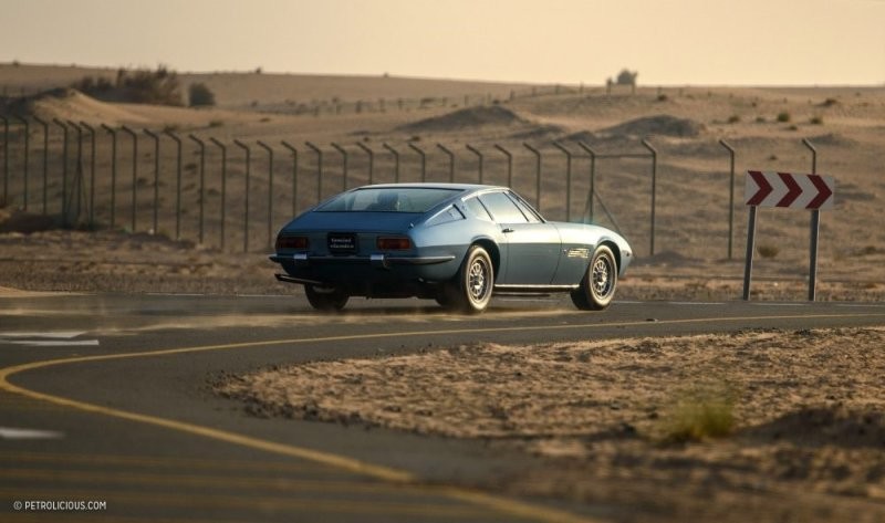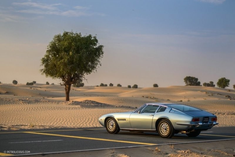 Гоночный мотор Ghibli объёмом 4,9 литра с четырьмя распредвалами просыпается с типичным для V8 рычанием. Мигель осторожным и точным щелчком переключает 5-ступенчатую коробку передач ZF, и мы начинаем наше путешествие в пустыню Аль Кудра. На горизонте мерцает оранжевое сияние, движение редкое, а температура намного ниже своего дневного пика. Иными словами, всё готово, чтобы Maserati продемонстрировала то, что получается у неё лучше всего: высокую крейсерскую скорость. Наши улыбки растягиваются от уха до уха после каждого переключения на пониженную передачу. Предположу, что для обгона грузовиков на многополосном шоссе тяговитому двигателю вовсе не требуются эти переключения, но нам хочется насладиться симфонией, которую исполняют четыре карбюратора Weber с нисходящей тягой и двойным дросселем. А кто бы поступил иначе?!