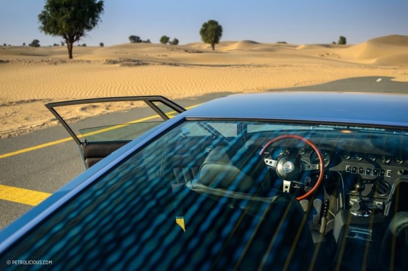 Кузов, нарисованный Джуджаро, получился гладким, и хотя у него есть определённые грани, он всё ещё выглядит очень обтекаемым. Правда, я не думаю, что мастер представлял, как его творение снуёт по пустынному ландшафту. После 40-минутного путешествия мы нашли подходящее место для нескольких фотографий, и представление не заставило себя долно ждать. Голубая краска Celeste (итал. «Небесная») меняет оттенок каждые 5 минут, в то время как восходящее солнце заставляет небо переливаться от тёмно-синего к насыщенному оранжевому и обратно. Я несколько раз шёпотом говорю сам себе «замечательно», и мне кажется, что Мигель, который видит машину каждый день, со мной согласен, даже несмотря на привычку. Теперь мы оба понимаем, почему Джуджаро назвал этот силуэт своим любимым произведением той эпохи.