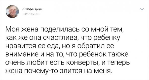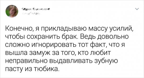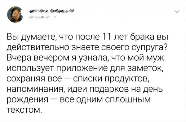 Найти свою вторую половинку - это задача не из простых. Но если уж она нашлась, то ей можно простить все ее странности и недостатки. А все житейские трудности надо встречать с улыбкой на лице. Собственно, именно так и делают авторы этих забавных и честных твитов.