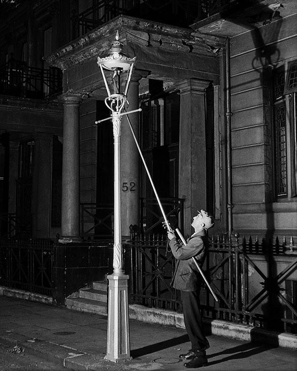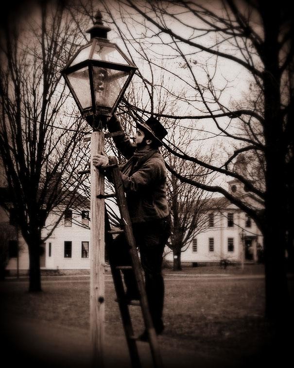 6. Фонарщики использовали длинные шесты, чтобы зажигать, гасить и заправлять уличные фонари, пока не появились электрические лампы.