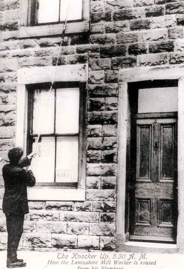 2. Люди-будильники стучали палками или бросали камешки в окна и двери клиентов, которые нанимали их, чтобы не проспать работу.