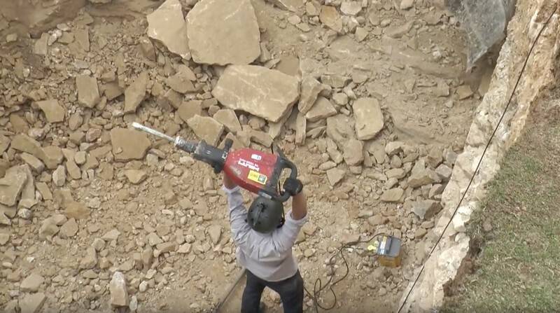 Еще несколько метров вниз, и наткнулись на твердую скалу. Пришлось использовать мощные отбойные молотки и долота, чтобы разбить камень