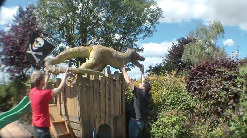 Динозавр был главным украшением двора. Также он призван вселять ужас в любых злоумышленников
