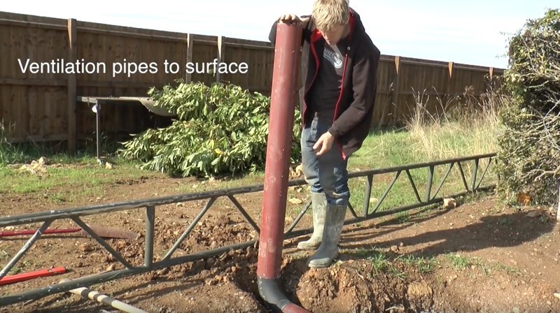 Когда бетон высох, Колин установил вентиляционные шахты, которые будут подавать свежий воздух в подземный бункер, позволяя отработанному воздуху выходить наружу
