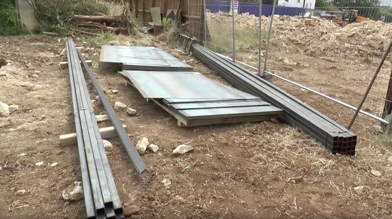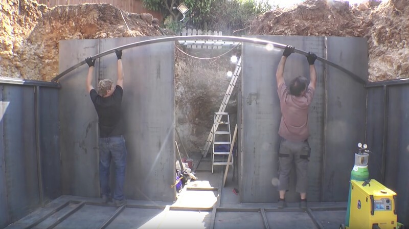 Когда яма была вырыта, привезли элементы стального каркаса убежища