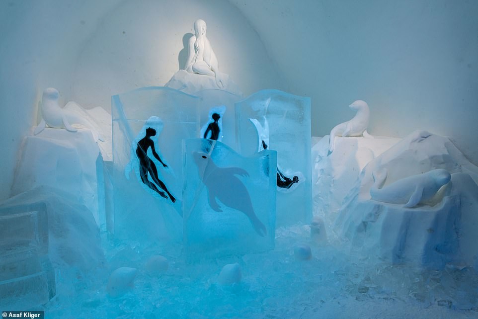 Источником вдохновения для номера «Maighdeann-roin», созданного Эмили Стил и Сарой Стил, послужила кельтская легенда о шелки, мифических женщинах-тюленях. «Секреты и послания спрятаны повсюду в снежных скульптурах, сверкающем льде, музыке и горько-сладкой истории, которая разыгрывается, как только вы входите в комнату», — говорят дизайнеры.