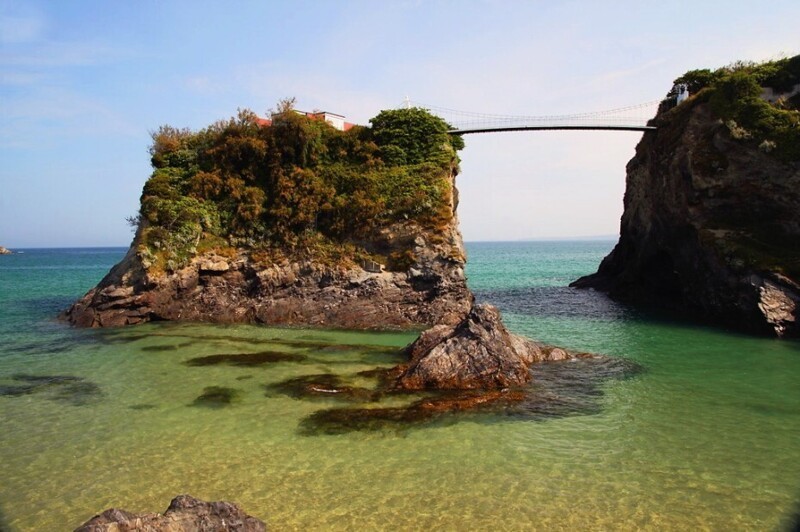 В английском приморском городке под названием Ньюки, Корнуолл, есть удивительный маленький дом, который сдается в аренду людям, желающим отдохнуть от цивилизации. Чтобы попасть сюда, надо пешком пройти по подвесному мосту над океаном - и тогда больше ничто не будет связывать вас с человечеством!