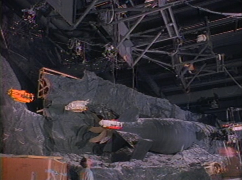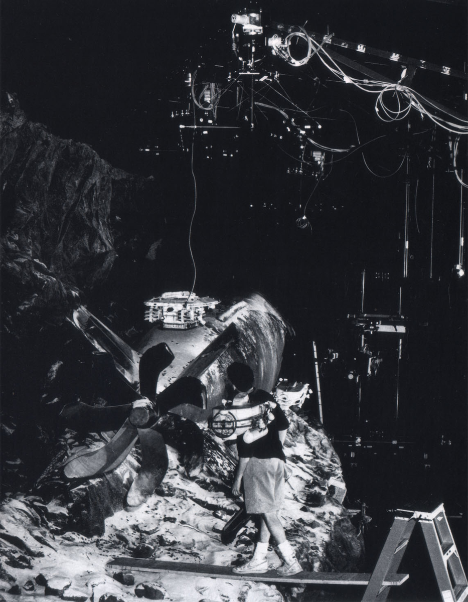 Тут использовали три небольшие модели батискафов. Каждый из них был подвешен на тросах.