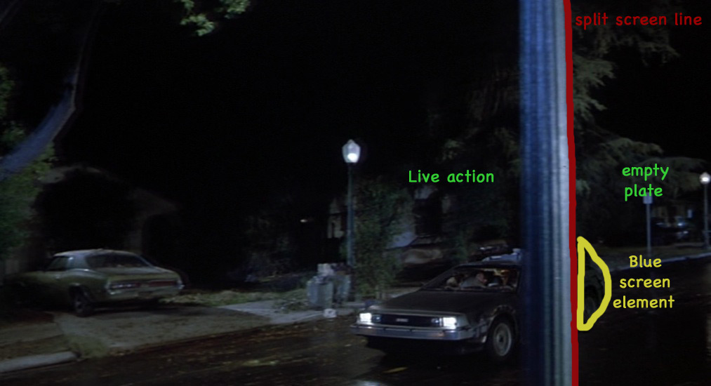 Фонарный столб макскирует линию разделения, где кадры модели и реальных съёмок были совмещены.