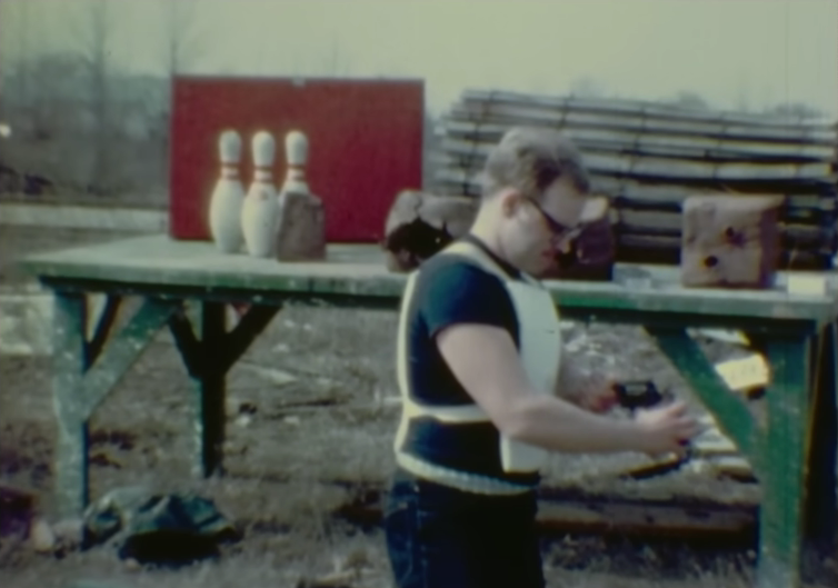 В 1972 году Ричард Дэвис впервые выстрелил в себя из пистолета 38-го калибра. Дабы показать, что оружие заряжено не холостыми патронами, он тут же расстрелял несколько кеглей для боулинга. В одном из поздних интервью изобретатель сообщил, что всего на подобных презентациях ему пришлось выстрелить в себя более 200 раз.