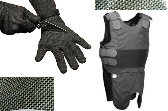 Кевлар можно изготовить в форме нитей или листов, после чего скомпоновать во что угодно. Между цепями этого полимера возникает водородная связь, которая повышает жесткость. Предел прочности кевлара в десять раз больше, чем у стали.