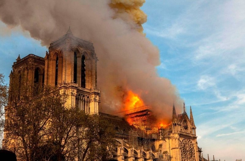 А в 2018-м французы задумали реставрировать этот самый шпиль. Построили леса, обложились материалами и кропотливо трудились целый год. А потом кто-то серьезно промахнулся с техникой безопасности - вспыхнул пожар. Очаг был как раз у шпиля. Пламя охватило всю кровлю, шпиль рухнул и разнес половину здания.