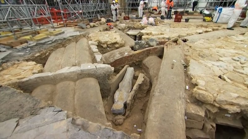 Чтобы восстановить собор в исходном виде, привлекли археологов. Сначала они зарылись в архивы, а потом еще и начали раскопки на месте пожара. И вот во время этих работ они наткнулись на два захоронения - они были под полом Нотр- Дам-де-Пари.