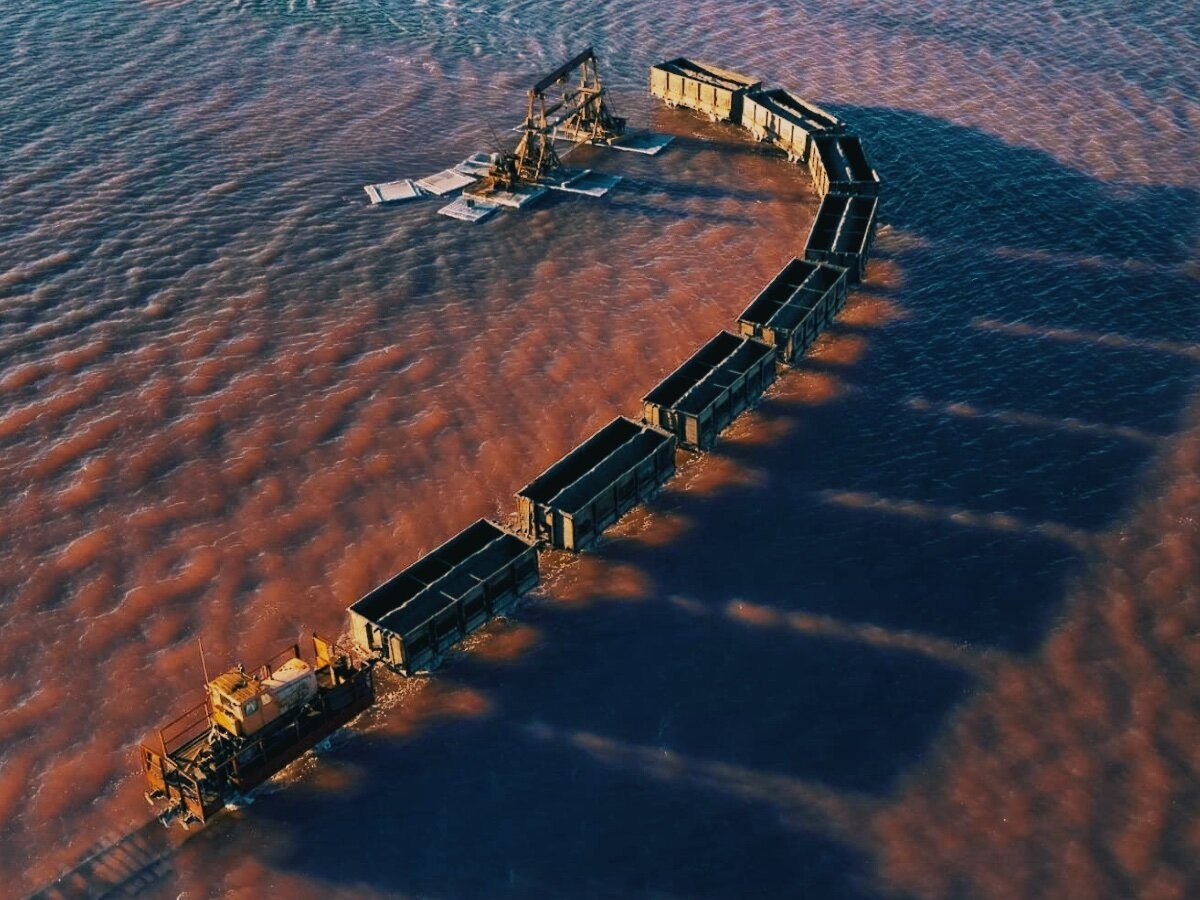 Впрочем, это ещё не все особенности данного поезда. Его часто сравнивают с комбайном, потому что он в определённом смысле собирает соль со дна, складывает её в вагончики и едет по рельсам прямо на солеперерабатывающее предприятие. Это такое вот ноу-хау алтайских мастеров.