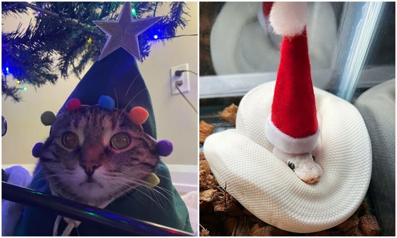 30 кадров с питомцами, которые словили новогоднее настроение (31 фото)