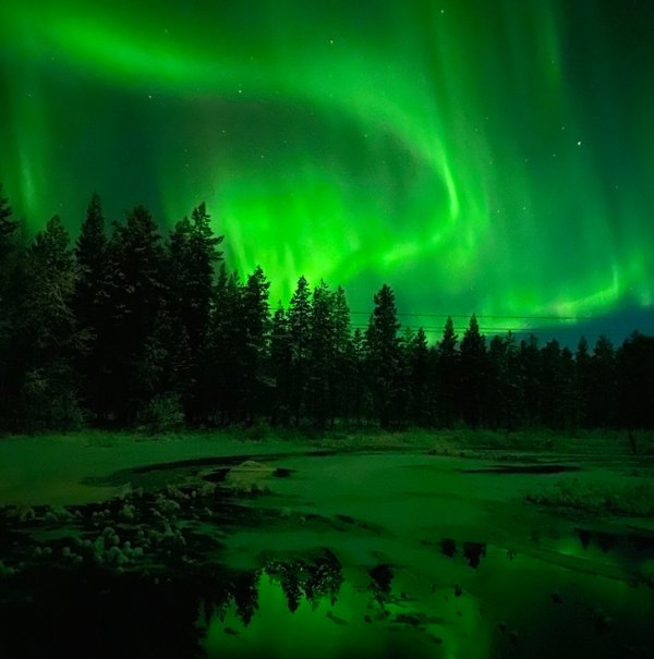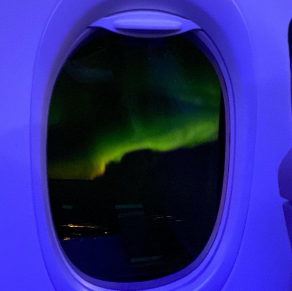 Северное сияние из окна самолета