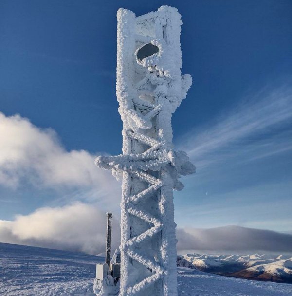 Вышка связи перестала работать из-за сильного холода. Она в буквальном смысле замерзла