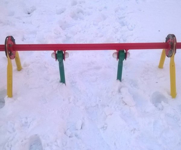 Обычные качели. Нет, их не завалили снегоуборочной техникой, это так намело