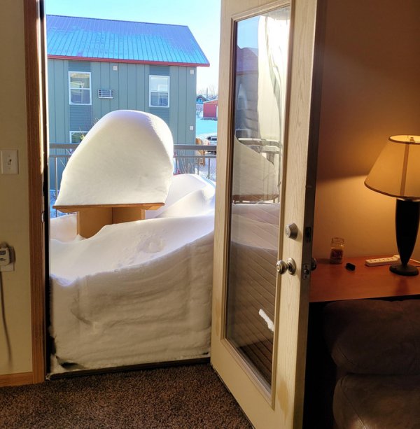 Вот сижу и гадаю, как теперь почистить балкон, чтобы снег не вывалился на ковер