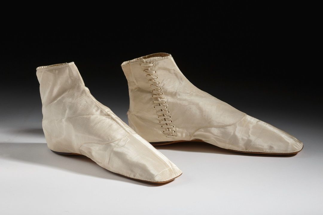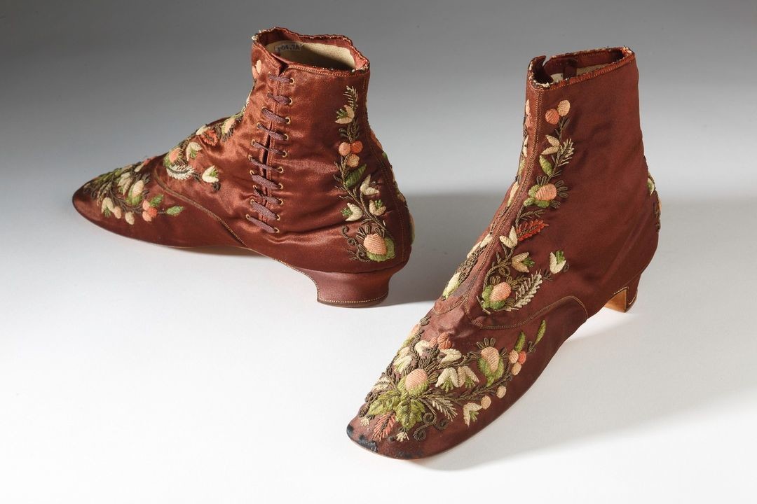 Пара вышитых вручную женских ботинок из Франции, 1855—1860