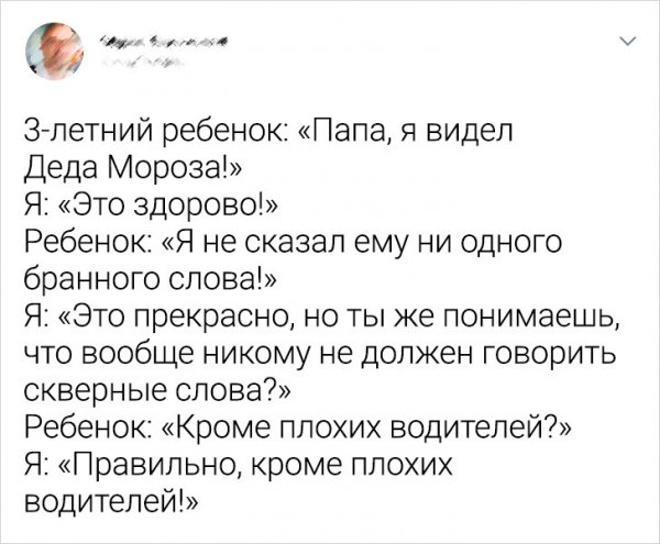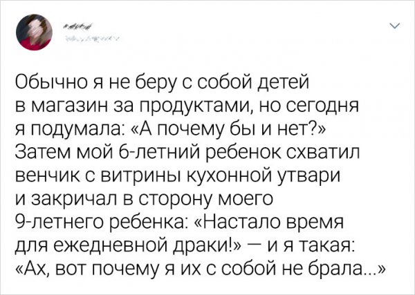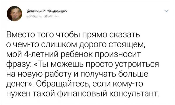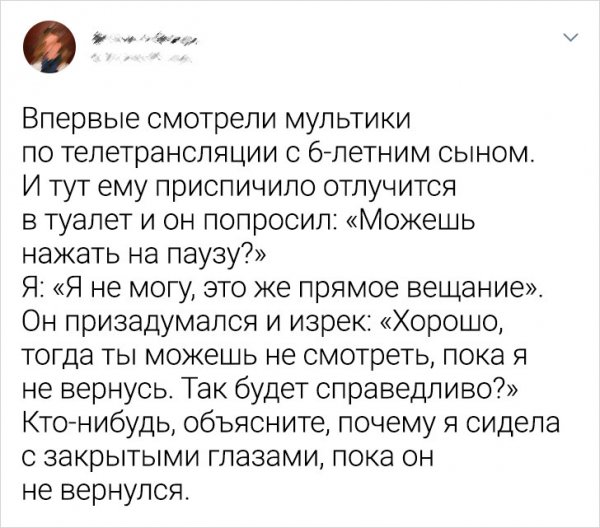 Детишки умеют пощекотать нервишки своим родителям. Но и при этом они могут их насмешить, как никто другой. А порой они выдают такие фразы, которые даже немного пугают своей глубиной и мудростью. Итак, давайте проведем пару минут на позитиве и поглядим новую подборку твитов об остроумных детях.