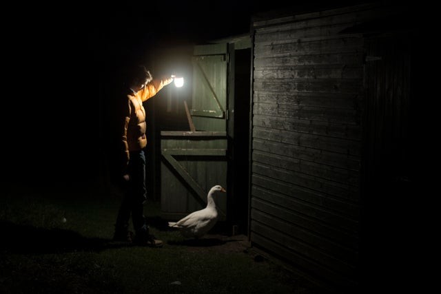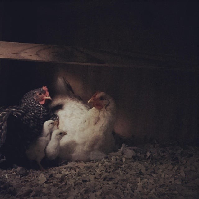 Я специально засунул руку в курятник, чтобы незаметно сфотографировать кур, готовящихся ко сну.