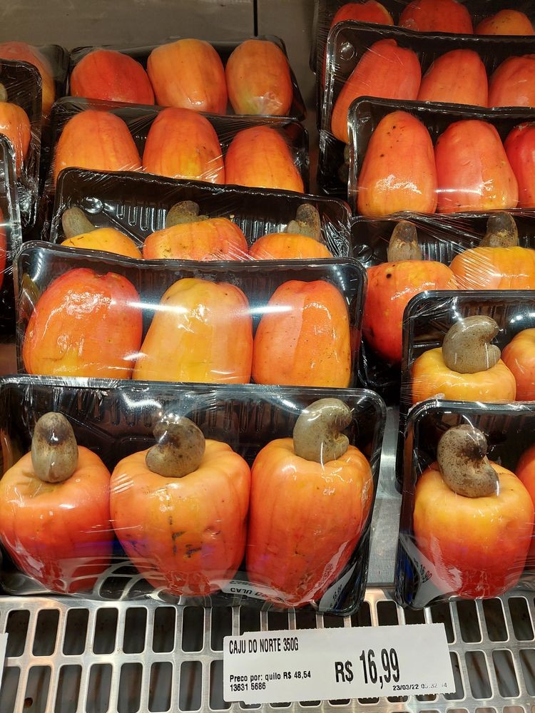 В супермаркетах Бразилии имеются в продаже плоды кешью с плодоножкой. Плодоножки тоже съедобны, но употреблять их в пищу можно только после предварительной обязательной обжарки. А иначе она просто сожжёт слизистую. Ходят слухи, что в беднейших районах к очистке кешью привлекают детей, которые постепенно теряют отпечатки пальцев: их начисто сжигает содержащаяся в кожуре кислота.