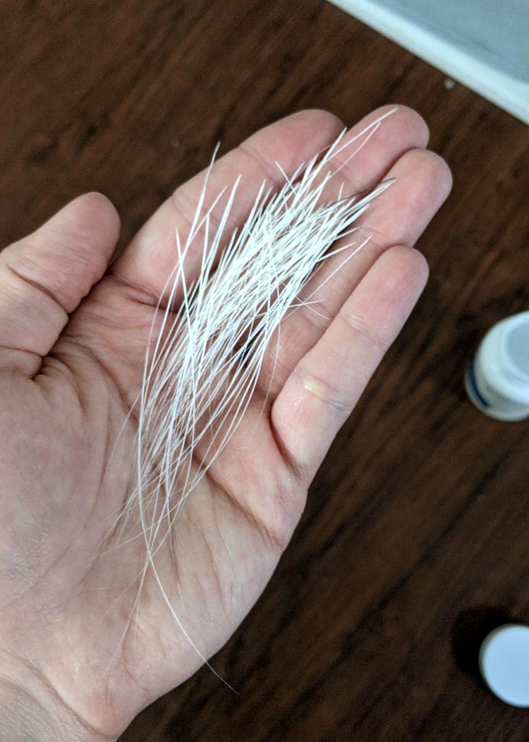Парень собирает вибриссы, выпадающие у его питомицы. На фото добыча за несколько лет.