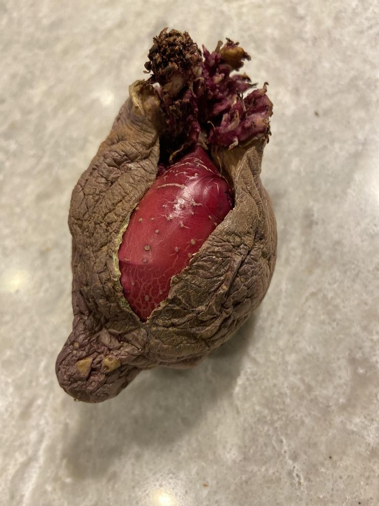 Внутри старого клубня зародилась новая жизнь, которая отчаянно рвётся наружу.