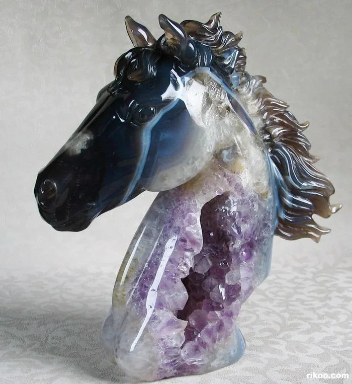 Голова лошади, вырезанная из аметистовой жеоды