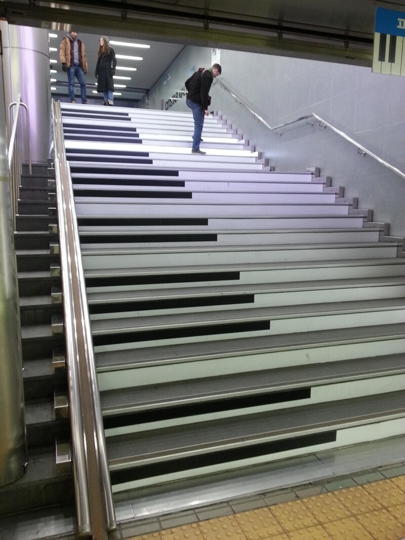 Эти ступеньки загораются и воспроизводят фортепианные ноты, когда вы идете по ним, Сеул