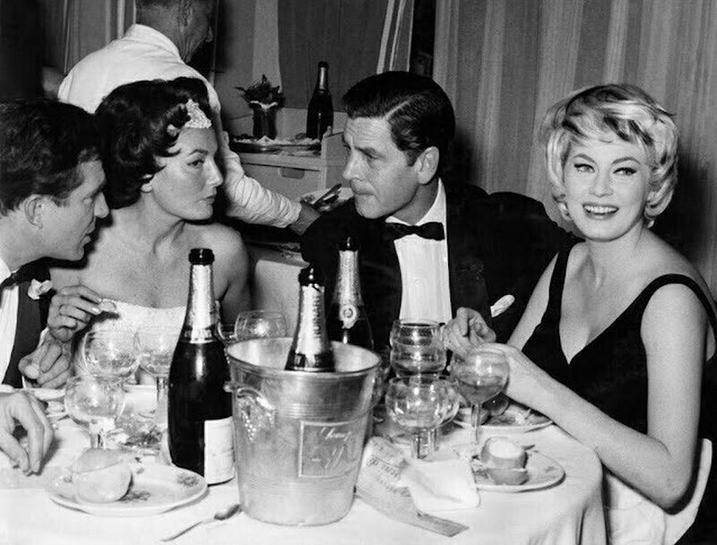 Актер Уго Тоньяцци со своей невестой во время ужина в казино Пьемонта