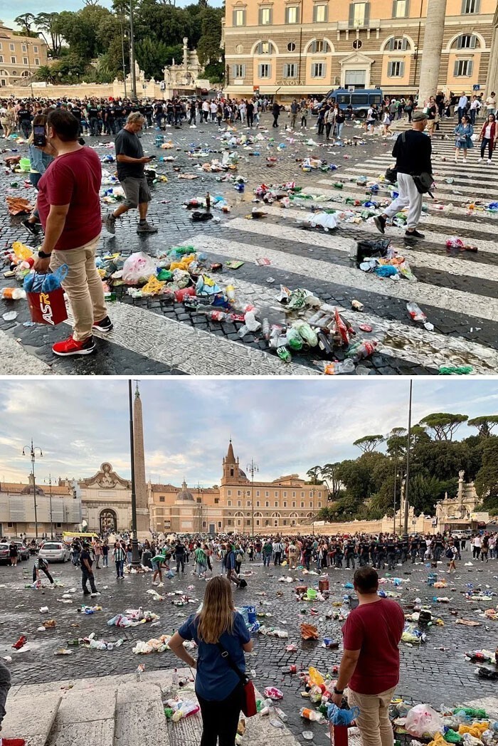 Вот в каком виде фанаты футбольного клуба Реал Бетис оставили площадь в Риме за несколько часов до матча