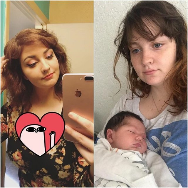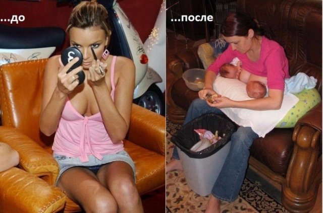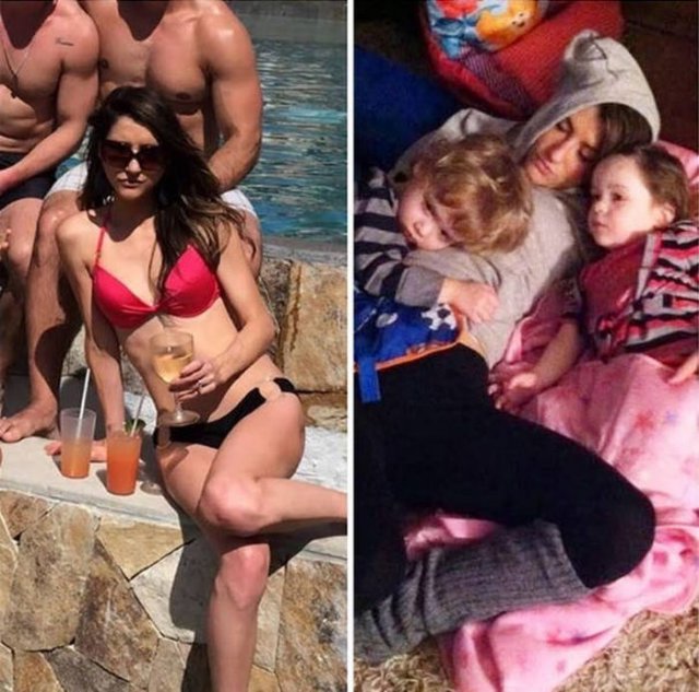 Пользователи социальных сетей решили поделиться кадрами, которые показывают их жизнь до того, как родились дети, и после. Да, жизнь радикально меняется. Конечно, приходится немного сократить время на развлечения и "тусовки" с друзьями, больше внимания уделять семье. И это действительно заметно - даже на подобных снимках.
