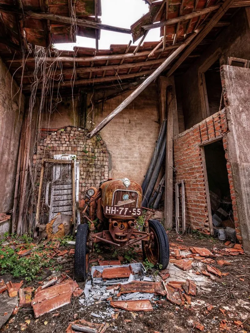 Заброшенный завод в Португалии, внутри которого стоят классические автомобили (15 фото)