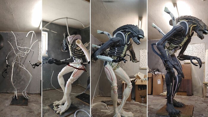 Профессиональная деятельность поляка Михала Крушинского связана с анимацией и графикой - поэтому его фантазия и креативность безграничны. Недавно он смастерил эту копию Чужого в полный рост - и получилась впечатляющая скульптура, на создание которой ушло 10 недель. По словам мастера, перед созданием фигуры он просмотрел множество архивных фото и документальных видео, чтобы рассмотреть все детали ксеноморфа из классического хоррора "Чужие".