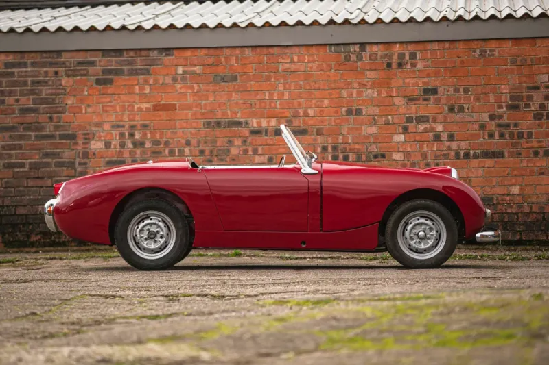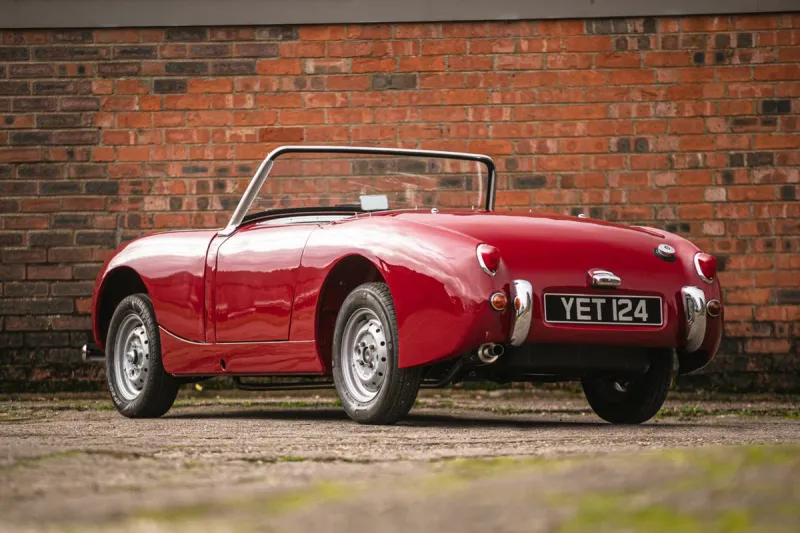 Британский гонщик, инженер и дизайнер Дональд Хили разработал Sprite по заказу президента BMC Леонарда Лорда, который задумался о возрождении довоенных родстеров Austin Seven. Европа оправилась от потрясений Второй мировой войны и спрос на маленькие спортивные машины рос день ото дня, не говоря уже об Америке. Во главу угла была поставлена экономия, автомобиль должен был получиться максимально дешевым. Узлы и агрегаты были «надерганы» на складе BMC: 4-цилиндровый мотор объемом 948 кубических сантиметров, коробка передач и детали подвески позаимствовали у Austin A35, а рулевое управление – у Morris Minor 1000. Зато дизайн – полностью оригинальный, тоже рожденный в экономии. Изначально фары задумывались как подъемные, но на это не хватило денег…
