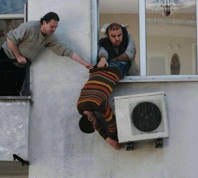 На работе, что вполне логично, всегда нужно помнить о технике безопасности. Точнее, о ней не стоит забывать в любом месте. Однако этим людям явно стоит об этом напомнить. Уж им, уверен, явно плевать на ТБ. Можно даже пофантазировать, что случится с героями фото, если что-то пойдет не так.